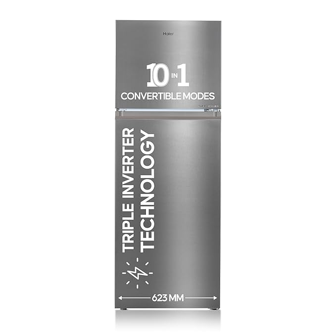 Haier 328 L, 3 Star, Convertible 10-in-1, Triple Inverter & Dual Fan Motor Technology, Frost Free Double Door Refrigerator (HEF-333TS-P, Inox Steel)